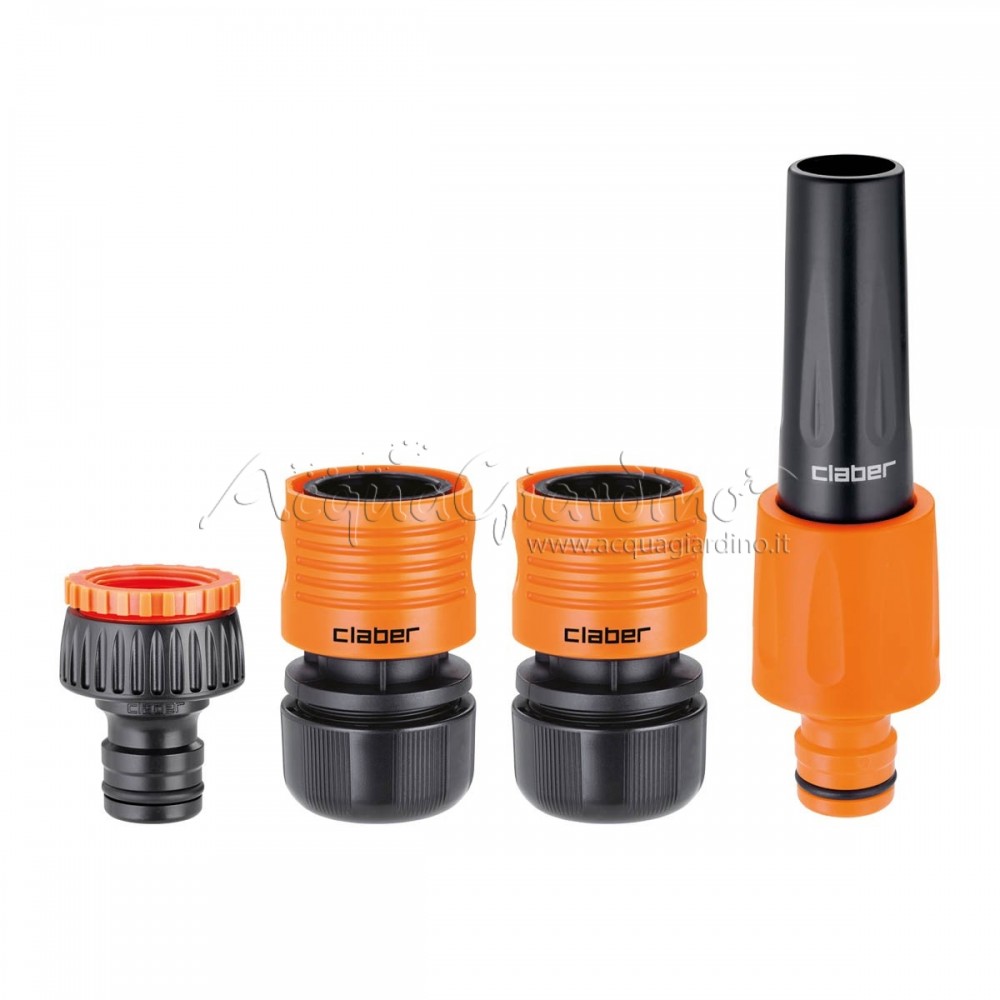 Contiene: presa a rubinetto 1” (26-34 mm) con riduzione 1” - 3/4” (20-27 mm), raccordi da 3/4” (19 mm) e lanciaspruzzo della gamma Max-Flow.